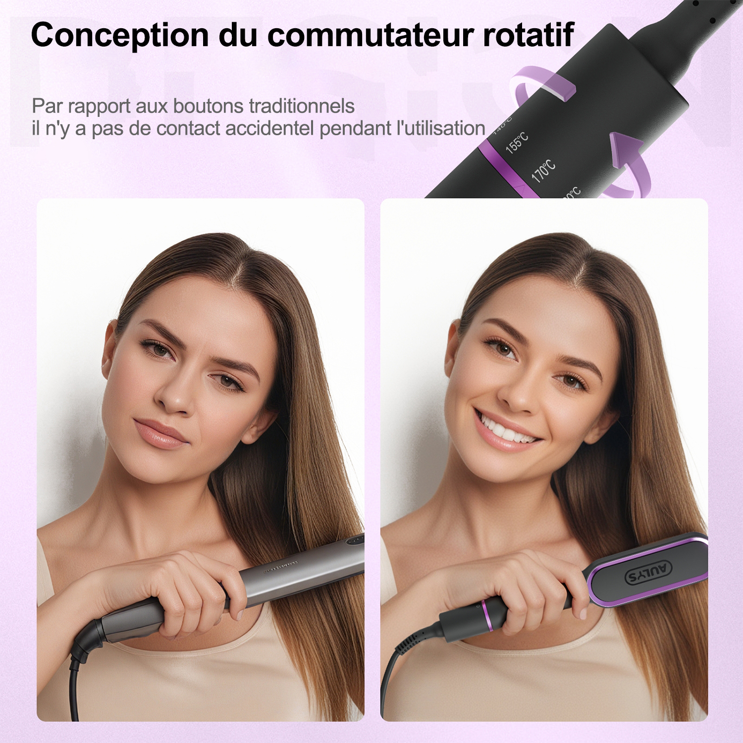 • 【5 Températures Réglables & Contrôle Intelligent】Choisissez entre 130°C et 200°C selon votre type de cheveux grâce à son contrôle intelligent à 5 niveaux pour une coiffure précise et sûre.