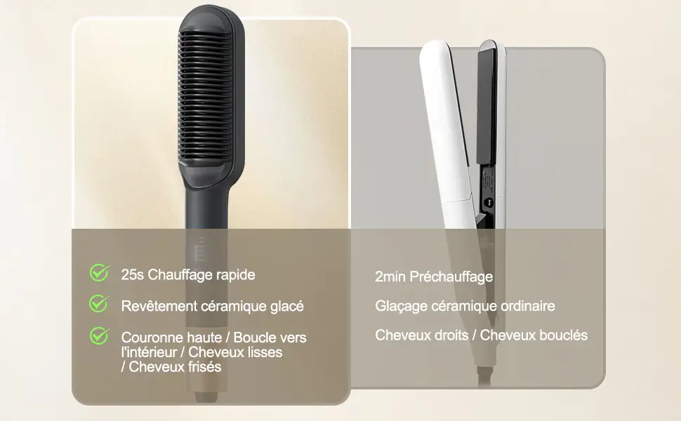 • 【Coiffure Express en 3 Minutes】25 dents chauffantes équivalentes à 24 plaques lissantes traditionnelles, résultats rapides et professionnels en seulement 3 minutes.